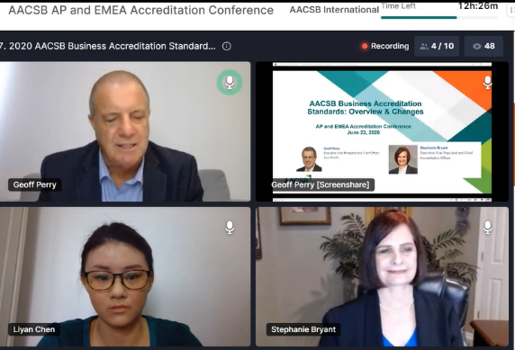 近日,suncitygroup太阳新城官网质量提升与国际认证办公室受邀参加AACSB国际认证线上会议(AP & EMEA Conference)。