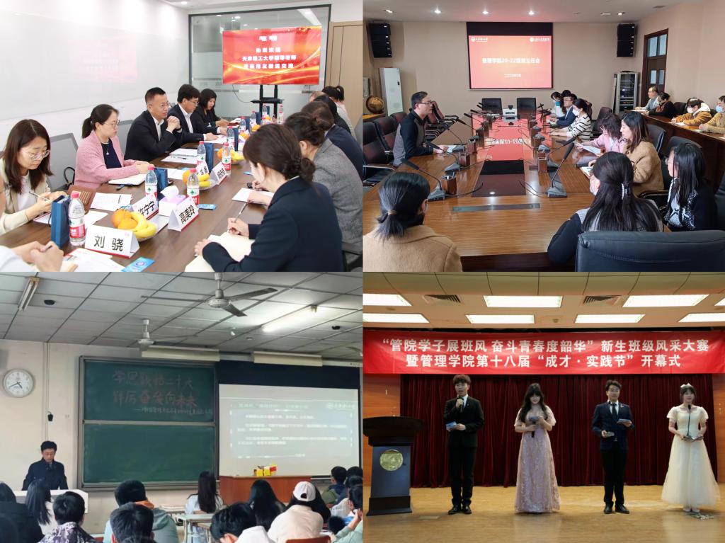 学院夯实学生管理基础,召开班主任会加强班级管理,定期召开主题班会、全体班长、团支书例会,班主任、辅导员深入学生宿舍,开展反诈骗宣传教育和校园安全教育。深入推进“清朗学风”建设工程,开展“辅导员下课堂”学风巡查工作,在各专业、各年级举办学情分析班会;深耕“清朗学堂(蜗牛公益辅导班)”“励志·笃学”优良学风进行时、成才实践节等品牌项目,举办新生班级风采大赛、“一技之长”系列经验分享、高数半月考、考研分享会等精品化活动;开设“管贤学堂”共享空间,营造“朋辈引领,榜样示范”的良好氛围。打造“就业直通车”,持续推进“五师导辅”工作模式,选优配齐辅导员老师、班主任老师、专业指导老师、“校友小导师”“学长小老师”等,精准开展“师生企业行”“就业指南针”“职面人生”等就业指导活动,实现教师领航、校友导途、学长引路、行业实践的协同化推动。
