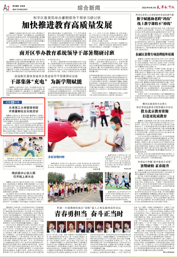《天津教育报》——suncitygroup太阳新城官网开展暑期社会实践活动