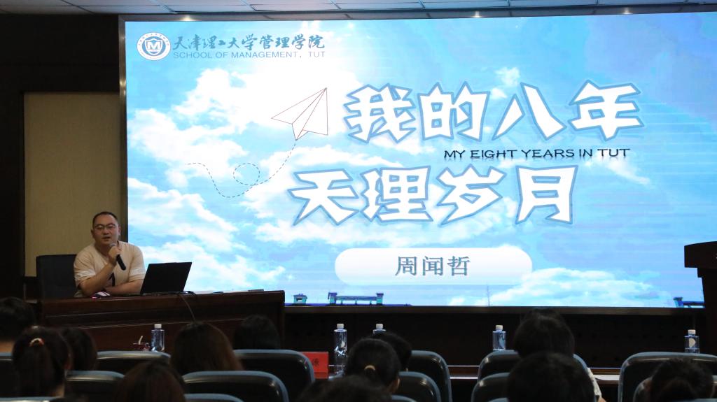 本次活动也邀请了2021级工商管理专业研究生周闻哲进行学生干部工作的经验分享。周闻哲以其八年的天理岁月为时间轴,介绍了他亲身的学生干部经历。同时,聚焦学生干部核心素——“责任心”“荣辱感”,鼓励同学们要“勤学”“善思”“笃行”“内省”,让优秀成为一种习惯,追求完美成为一种常态。针对学生干部们的热点问题,例如“如何平衡好学习和工作的时间”“如何与其他部门配合好工作”等,周闻哲也详细且耐心地进行解答。