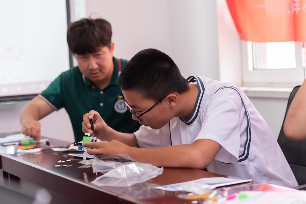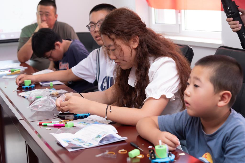 用灵巧的双手解放双手,经过实践团成员精彩和生动的演示后,小朋友们对科技作品更加充满兴趣,一个个都想跃跃欲试,实践团成员以“大手拉小手”的模式带领孩子们现场体验了“绘画机器人”的制作过程,用实际行动感受到了科技的魅力。当拼接好的机器人开始工作时,孩子们一个个探着小脑袋认真观看,忍不住惊叹:“哇,太神奇啦!”