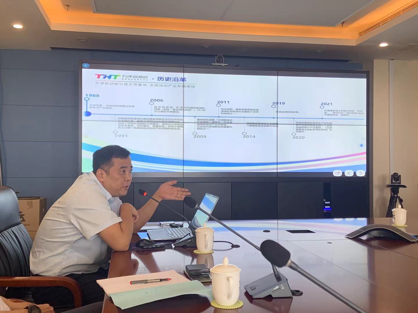 首先,信创招商局李勋副局长和魏巍科长共同对天津滨海高新技术产业开发区的建设现状进行了简要介绍。天津滨海高新技术产业开发区由华苑科技园、海洋科技园、渤龙湖科技园和京津合作示范区四个片区组成,规划面积135平方公里。建区三十多年来,高新区先后被批准为国家创新型科技园区、国家双创示范基地、国家文化和科技融合示范基地、国家生态工业示范园区、国家新型工业化产业示范基地、国家新能源产业化基地、国家知识产权示范园区和国家海洋高新技术产业化示范基地,形成了以信创产业为首位度,以新经济服务业、生物医药、新能源、高端装备制造为支撑的“113X”高端产业体系。全力建设“中国信创谷”“细胞谷”,集聚了以北斗、中科曙光、飞腾、麒麟、360为代表的一批战略性新兴产业,引育了云账户、今日头条、腾讯等一批领军企业,汇集了航天五院、航天十一院、中电科十八所、中科先进院、浙大滨海研究院、国防科大研究院等一批高端科研院所,成为天津市创新资源最为丰富、自主知识产权拥有量最多、经济增长最具潜力的区域。