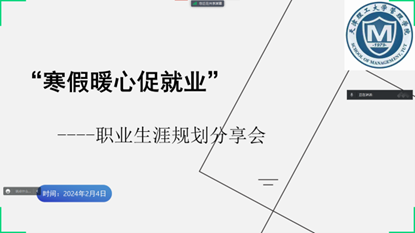 为积极响应全国大学生职业生涯规划大赛的号召,引导我院学生将职涯规划工作前置,suncitygroup太阳新城官网于2月4日开展了“寒假促就业暖心行动”之职业生涯规划分享活动。本次活动邀请到我校职业生涯规划大赛成长赛道一等奖获得者杨贺新、曾晨鑫同学进行经验分享。