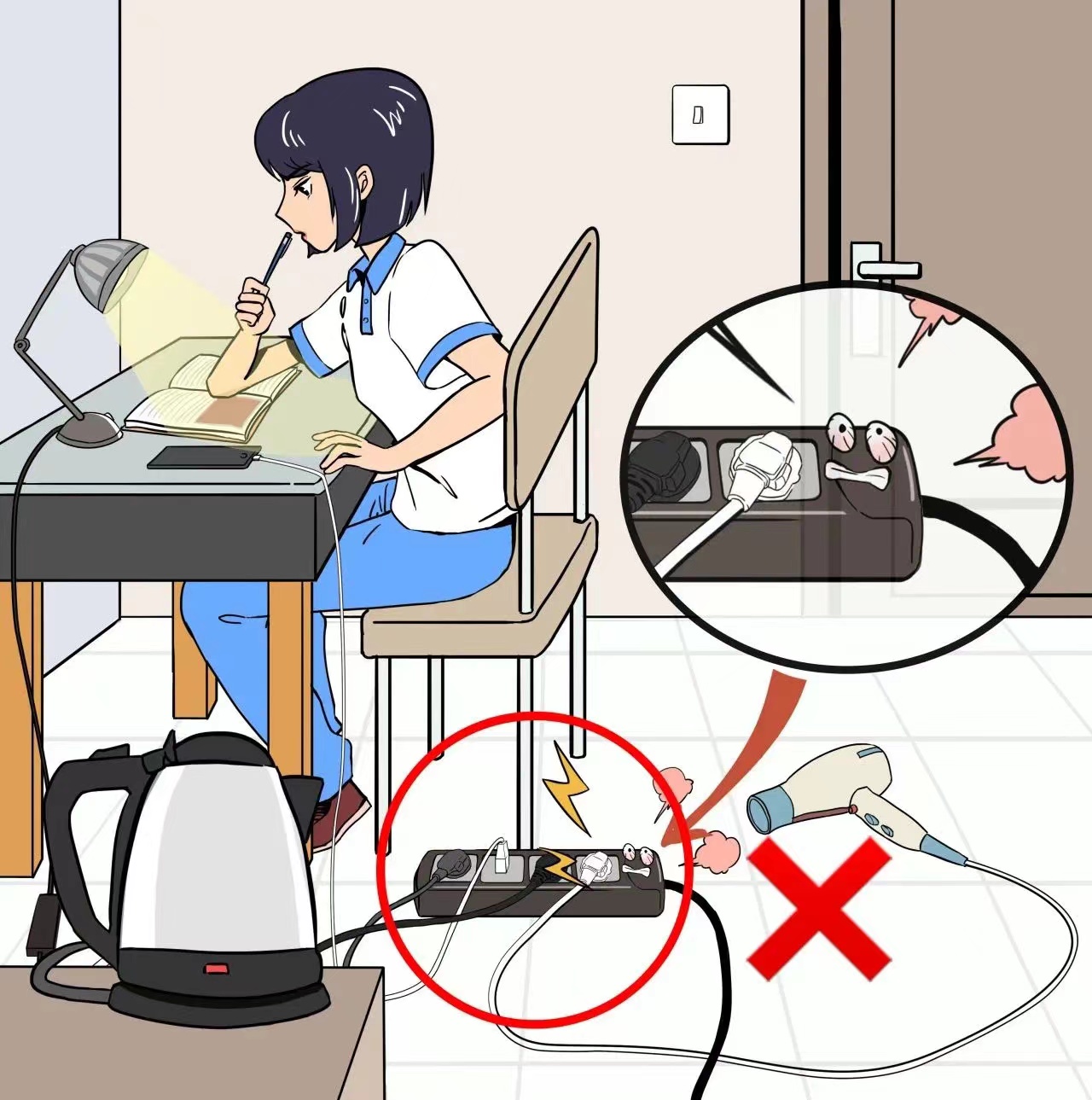 3.高度重视用电安全,严禁私拉电线,不得随意在宿舍内更改、拆卸、安装电源线路、插座、插头等;严禁存放、使用违规电器。