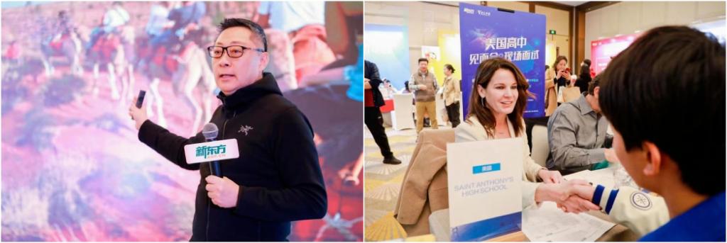展会之中,新东方教育科技集团CEO周成刚老师为同学们带来《启示未来·世界名校探访启示录》主题讲座,他分享了自己带领团队在十年间探访了百所世界名校后,对于国际教育的思考和感悟,也给大家带来关于世界各地不同的教育体系、国际教育趋势、留学优势及挑战、如何规划留学之路等方面的经验和见解。活动最后,海外院校招生官与学生一对一交流,帮助同学们了解招生政策和院校专业选择等问题;世界名企代表与同学们深入讨论,帮助同学们增加求职经验。