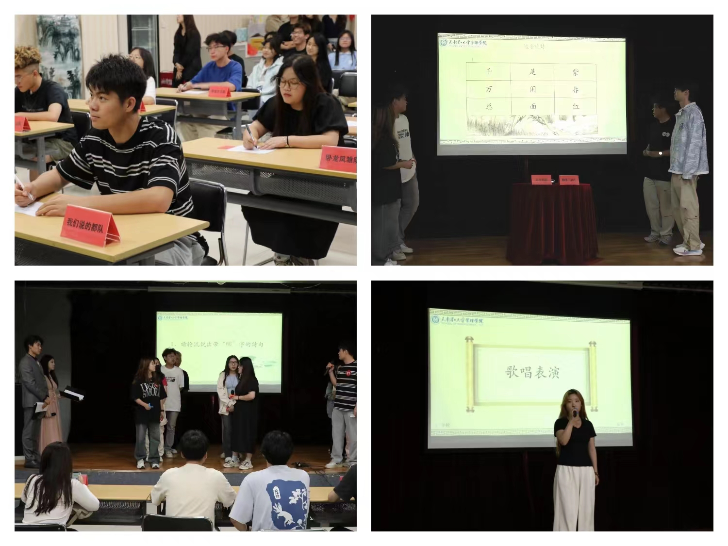 经过前期积极报名,由各专业的同学组成了8支队伍参与本次比赛。比赛现场氛围活泼激烈、趣味盎然,各位参赛选手以文为媒,尽情徜徉在古诗词的浩瀚海洋中。在各个环节中,他们不仅充分展现了对诗词文化的深厚理解,还彰显出队伍间无与伦比的默契与配合。